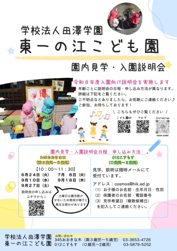 園内見学・入園説明会の日程等が決まりましたのでお知らせします。